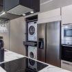 La cucina moderna con isola è completamente attrezzata con forno, microonde, frigorifero con dispenser di acqua e ghiaccio, lavastoviglie, piano cottura, lavatrice, asciugatrice e TV, offrendo tutto il necessario per un soggiorno di qualità. Le tre camere da letto matrimoniali garantiscono spazio e privacy per ogni ospite. Presenti inoltre due bagni finemente arredati, di cui uno completo con box doccia.
